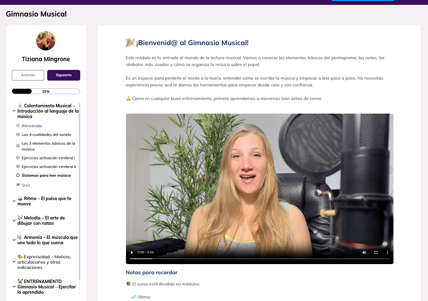 El Gimnasio Musical es un espacio de entrenamiento online donde trabajás lectura musical, oído y mentalidad como quien entrena un músculo: con foco, progresión y resultados visibles.